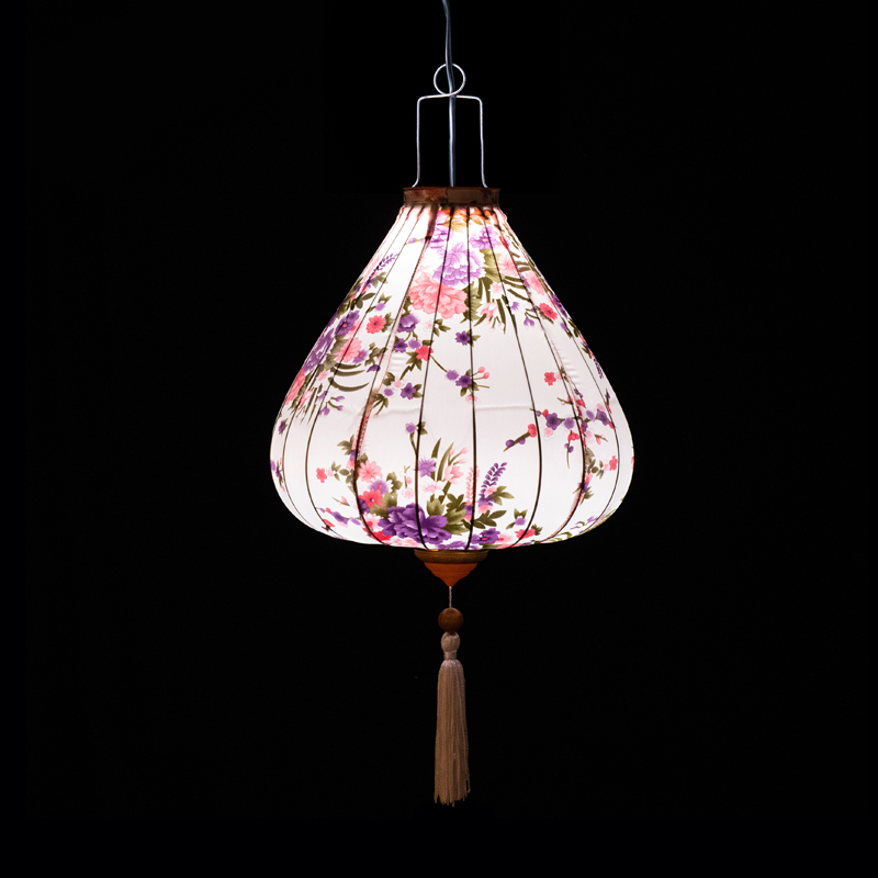 Это традиционные подвесные фонарики ручной работы, изготовленные из шелкового материала с элегантным цветочным узором, которые делают его изысканным и красивым.