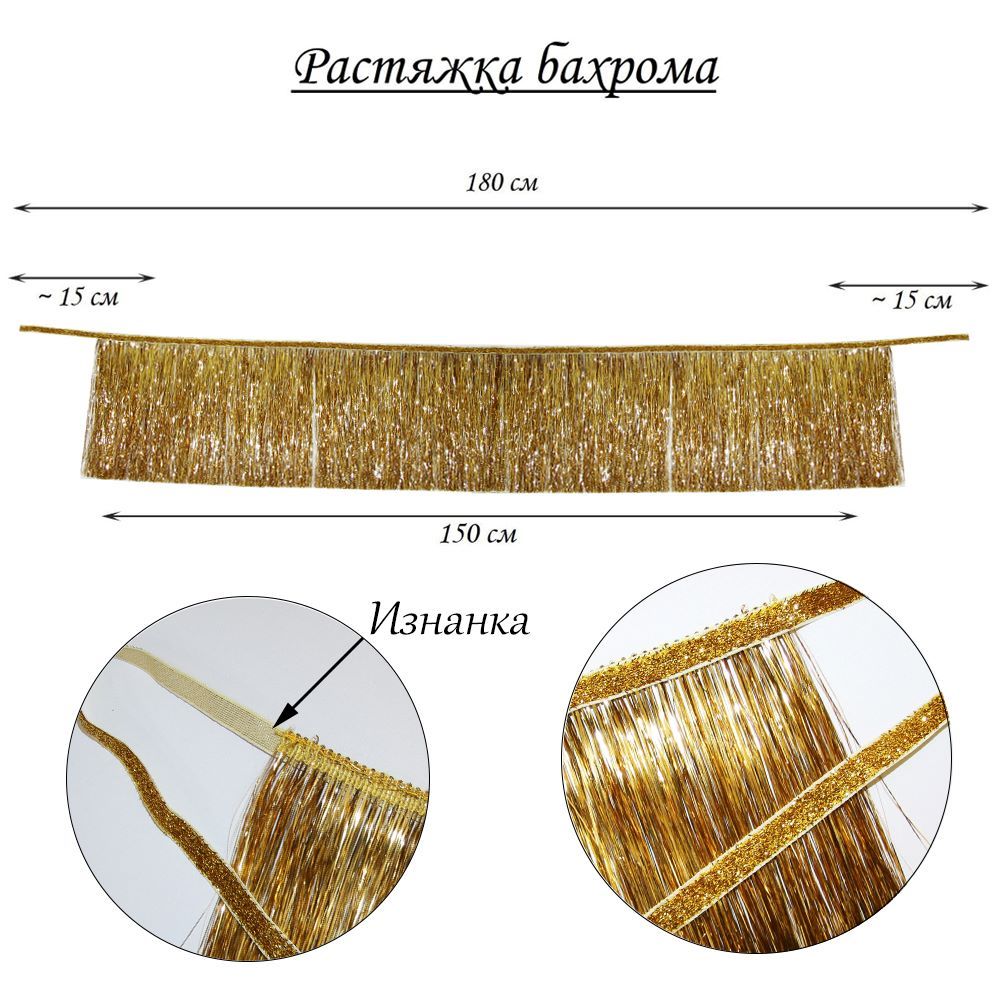 Растяжка бахрома, металлик золото - 1 шт