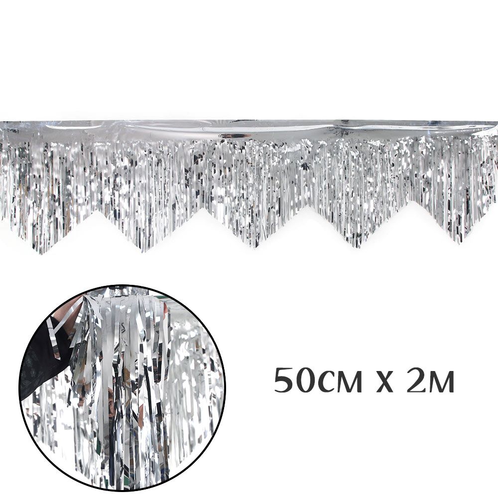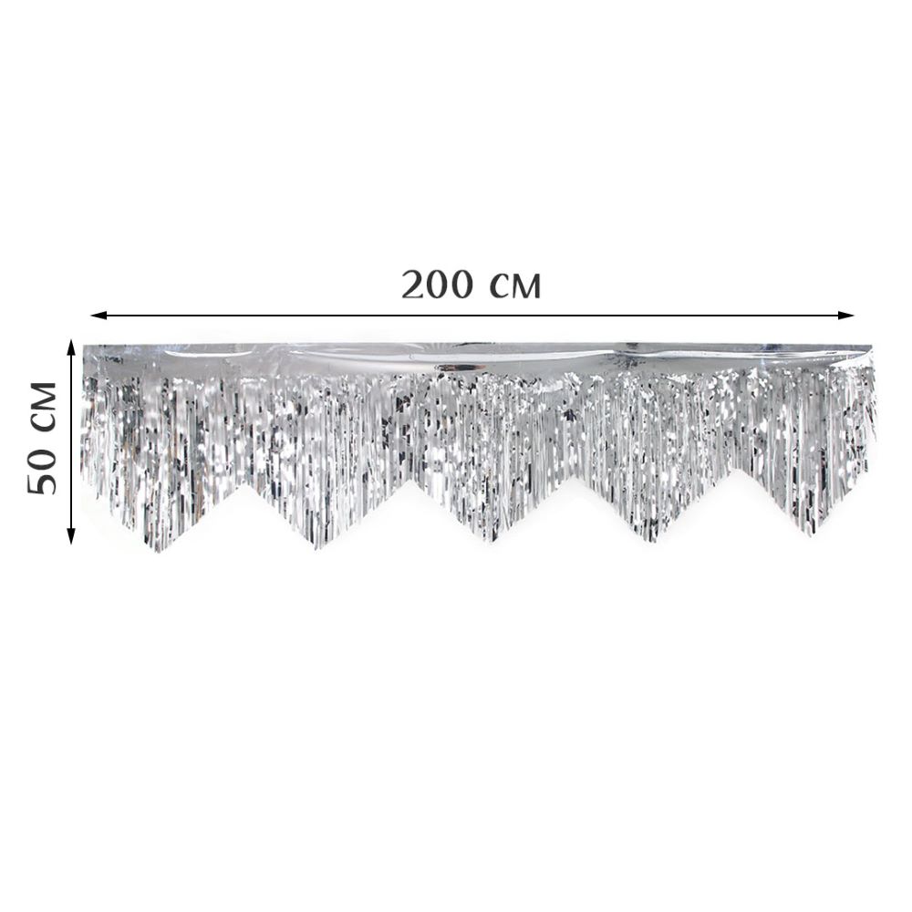 Занавес Дождик бахрома 50 см х 2 м, металлик серебро