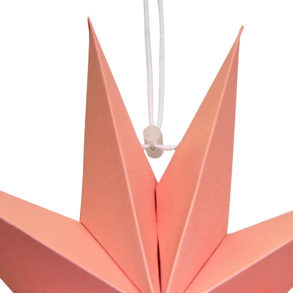 Объёмная декоративная звезда из картона диаметром 30 см с 9 лучами. Оснащена встроенным шнурком для подвешивания. Поставляется в компактном сложенном виде и быстро собирается: специальный шнурок при затягивании придаёт изделию объём и фиксирует форму. После сборки звезда остаётся устойчивой без дополнительных креплений и может использоваться многократно.