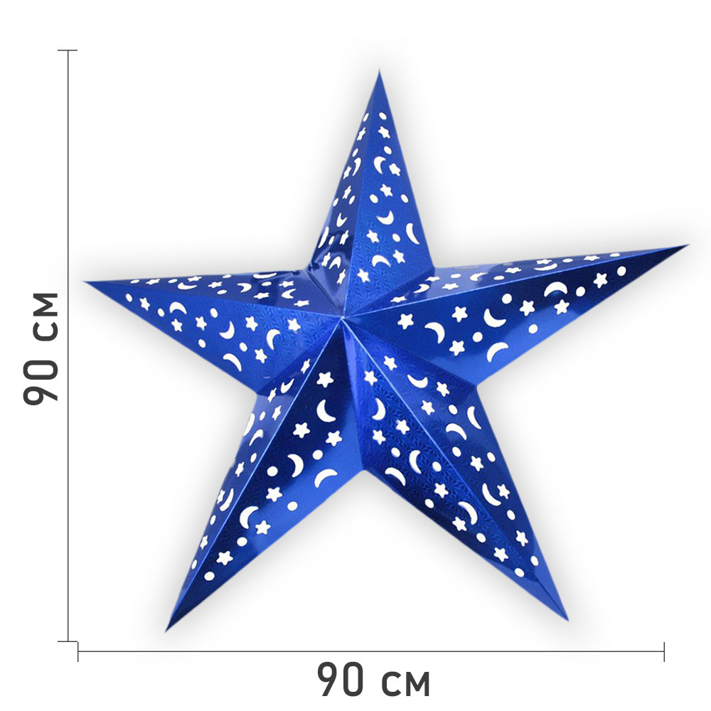 Звезда бумажная 90 см голографическая синяя